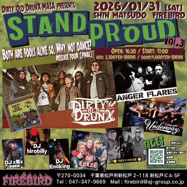 1/31(土) DOD MASA presents 【STAND PROUD vol.3】Dirty Old DrunX1st MAXI SINGLEBoth are fools alike so, Why not dance?RELEASE TOUR 【FINAL】