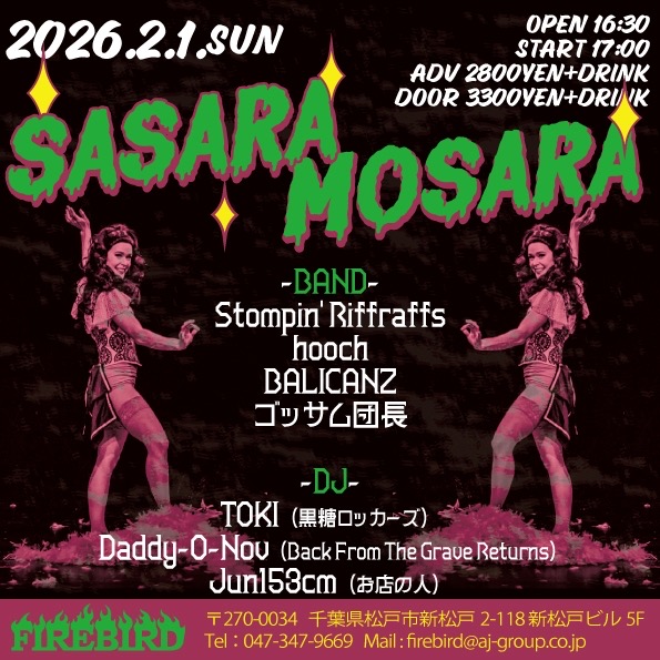 2/1(日) SASARA MOSARA at Shinmatsudo FIREBIRD