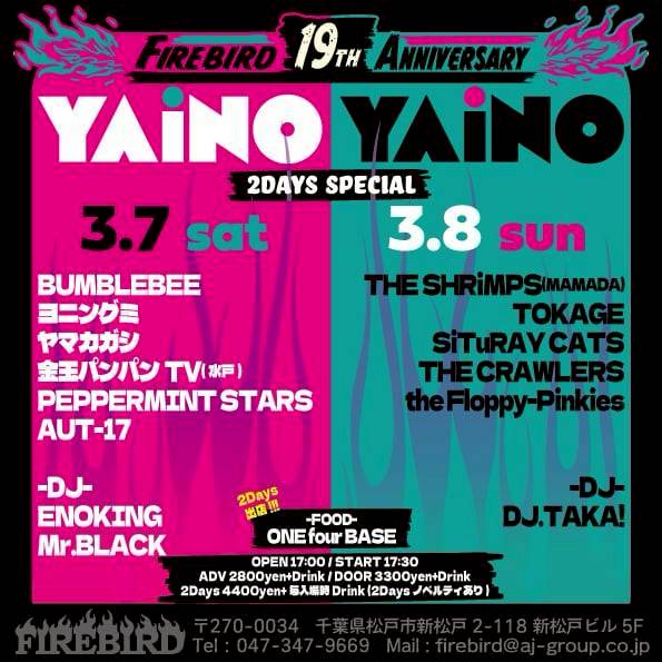 3/7(“y) YAiNO YAiNO Shinmatsudo FIREBIRD 19th Anniversary 2Days SPECIAL