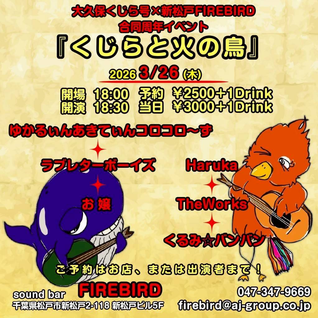 3/26(木) 大久保くじら号×新松戸FIREBIRD 合同周年イベント くじらと火の鳥