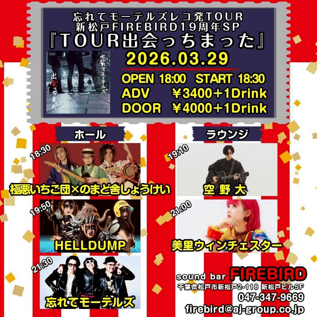 3/29(日) 忘れてモーテルズレコ発TOUR 新松戸FIREBIRD19周年SP TOUR出会っちまった
